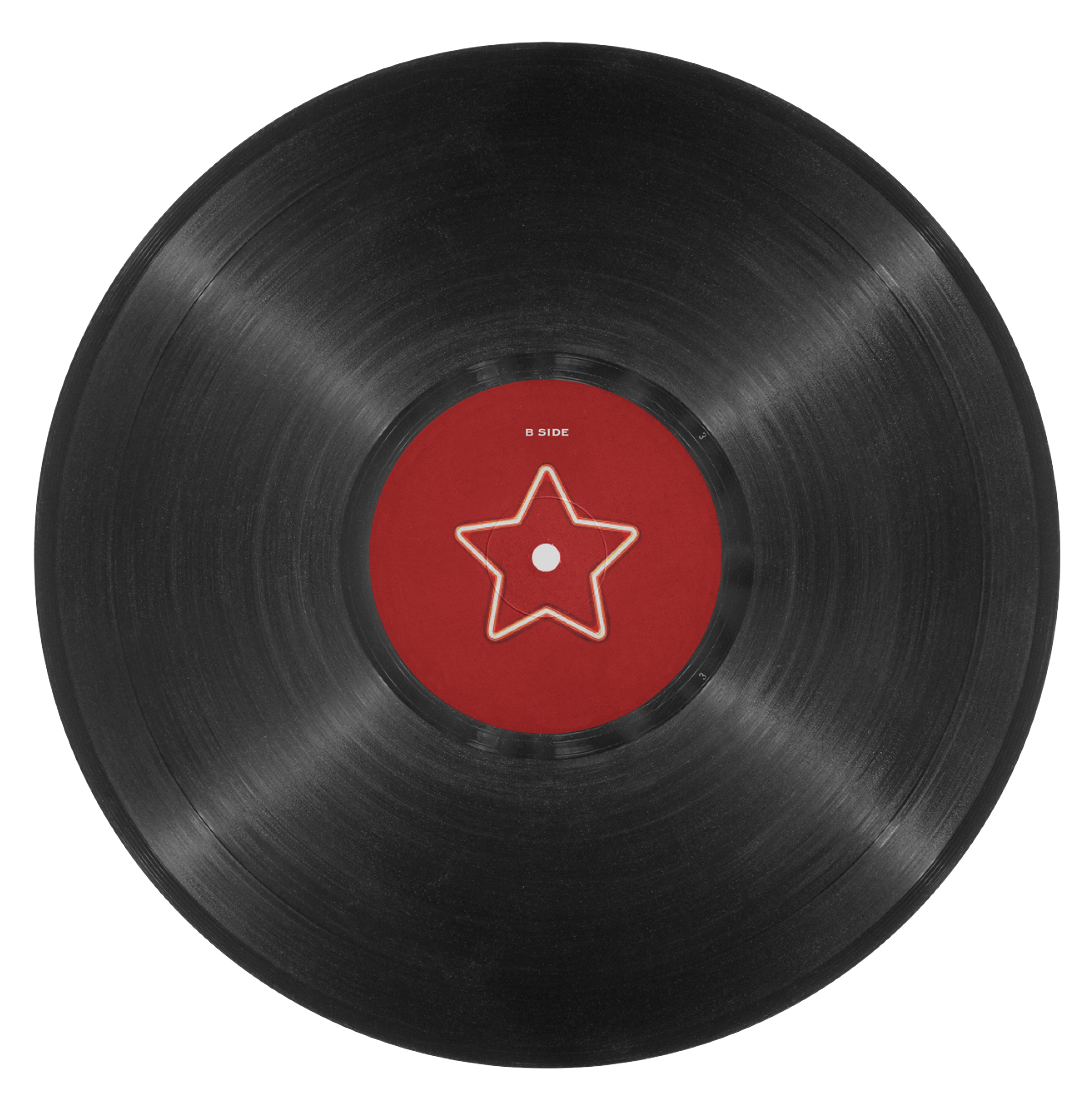 The final outcome is a vinyl LP package that includes a front and back cover, dust sleeve, and center label, along with additional branded assets that extend the visual language of the project.